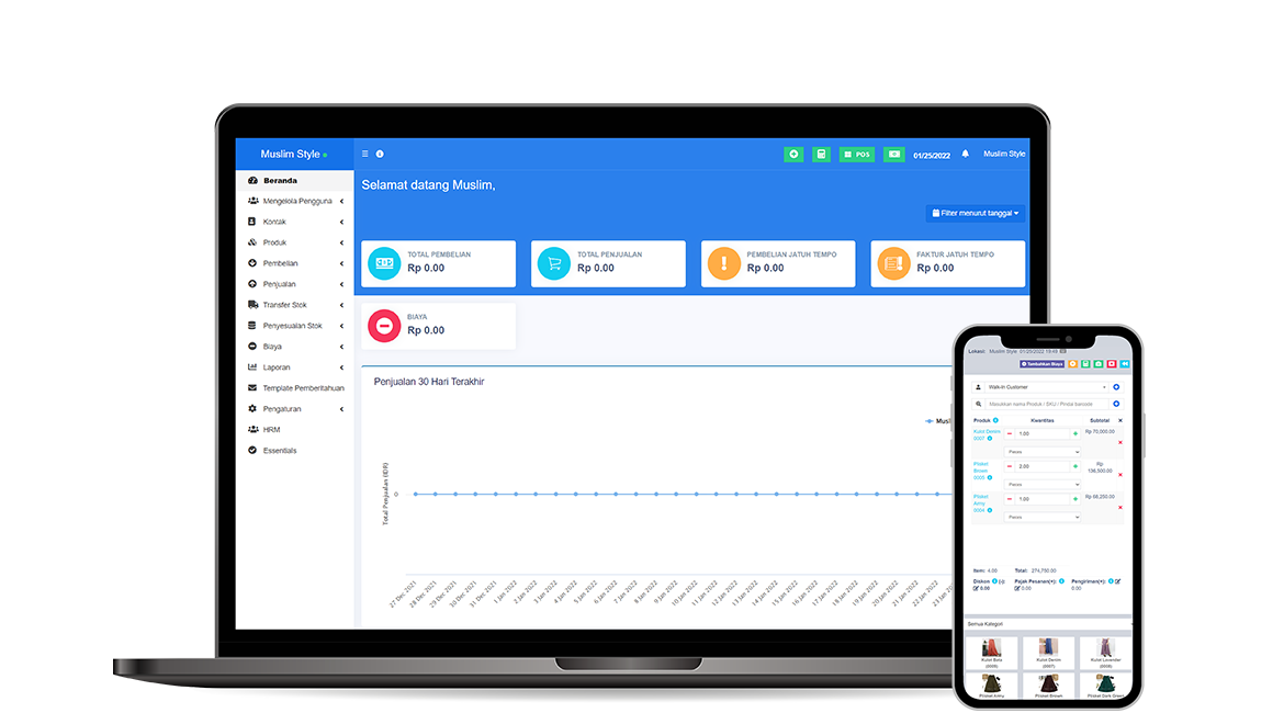 Aplikasi KasirBiz dapat mengakses dan mengontrol suluruh cabang bisnis (pembelian, penjualan, stok barang, dan laporan) secara langsung hanya dari samartphone, tablet, dan komputer Anda.